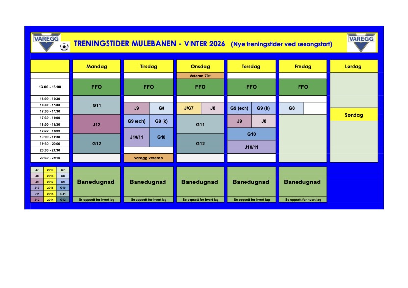 Under finner du en oversikt over treningstider pr 01.01.2025