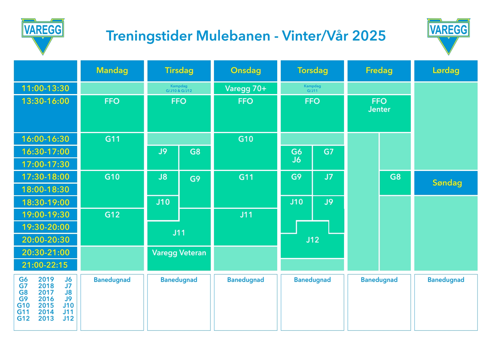 Under finner du en oversikt over treningstider pr 01.01.2025