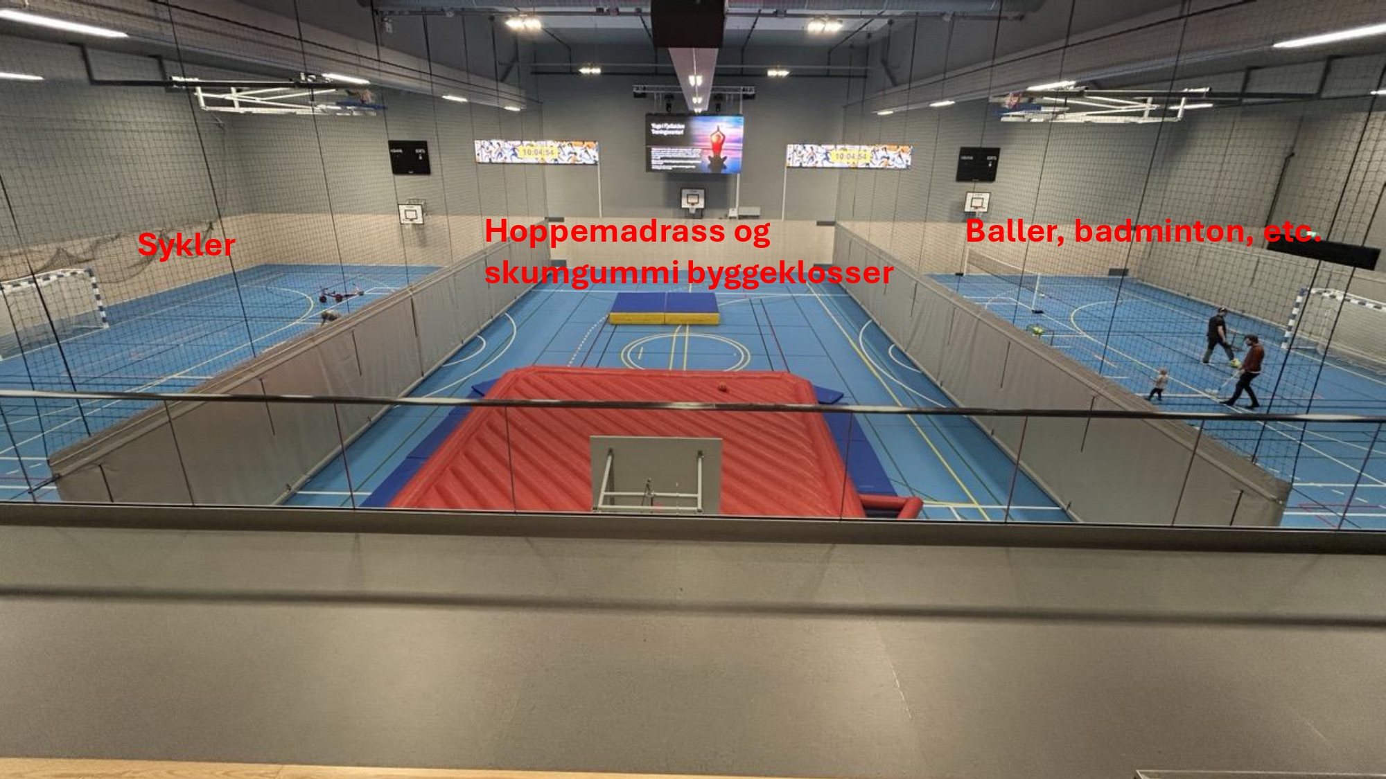 Vi har blant annet baller, badmionton, hoppemadrass, tjukkas, sykler, minifotballmål for å nevne noe!